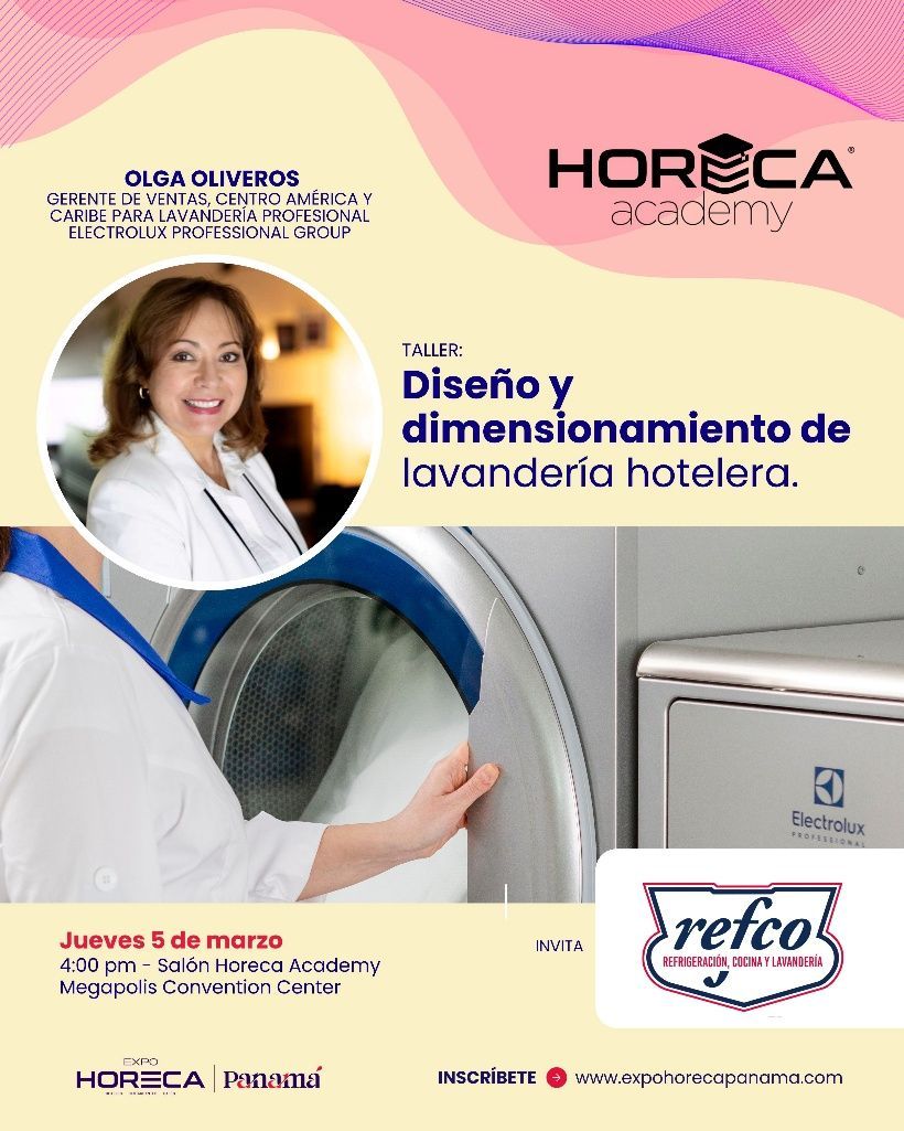 Especialistas de REFCO estarán disponible en el stand # 149 para demostrar los equipos y atender consultas de los asistentes. Adicionalmente, Olga Oliveros, representante del fabricante Electrolux Professional presentará en HORECA ACADEMY un taller muy completo sobre “Diseño y dimensionamiento de lavandería hotelera” el jueves 5 de marzo a las 4:00 pm.